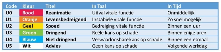 In onderstaand schema kan je de urgentiecategorieën in NTS bekijken.